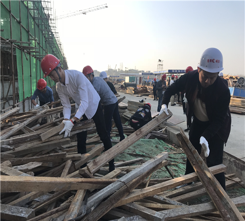 當(dāng)天,二支部全體黨員前往馬壕污水處理廠擴(kuò)容工程現(xiàn)場參觀學(xué)習(xí)。項目負(fù)責(zé)人詳細(xì)的介紹了項目基本情況,并帶領(lǐng)全體黨員在現(xiàn)場開展治理揚塵、搬運模板、構(gòu)件等志愿服務(wù)活動。黨員們佩戴黨徽,頭戴安全帽,以一名項目建設(shè)者的身份積極參加馬壕污水處理廠現(xiàn)場建設(shè),以實際行動支持項目建設(shè),助推重點工程進(jìn)度。